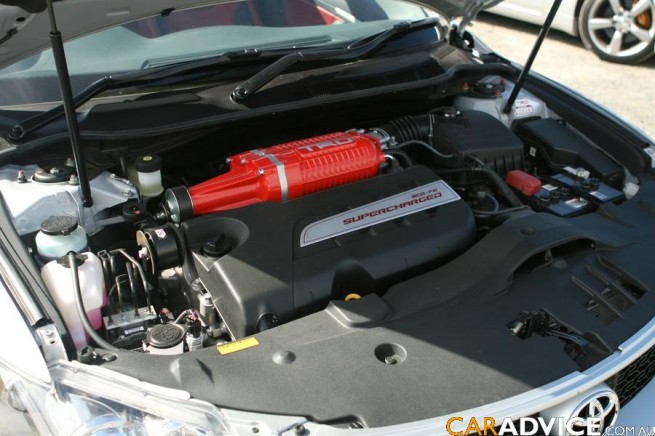 Och som ni kan se så sitter där en lysande röd kompressor med bokstäverna TRD på.