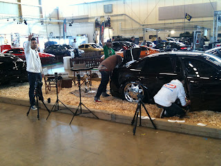 Detta var en suprice för oss alla.. Han kom visst fram till Geiros igår, Sa att han hade sett och hört väldigt mycket om bilen, Och erbjöd sej att göra en pinstripe på hans bil… Här på mässan… Framför alla andra.. Utan förberedning.(Förutom från att åka o hämta färg och pensel)
